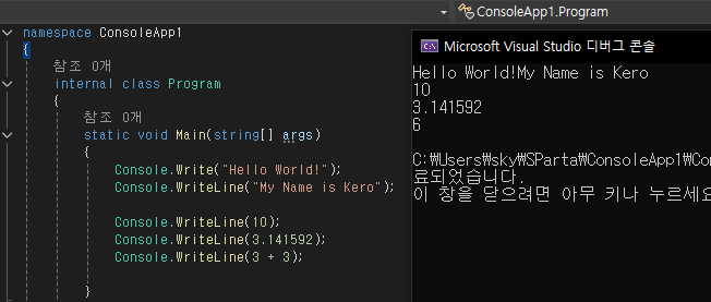 그래서 우리는 Console.WriteLine("");을 사용 할 수 있다.