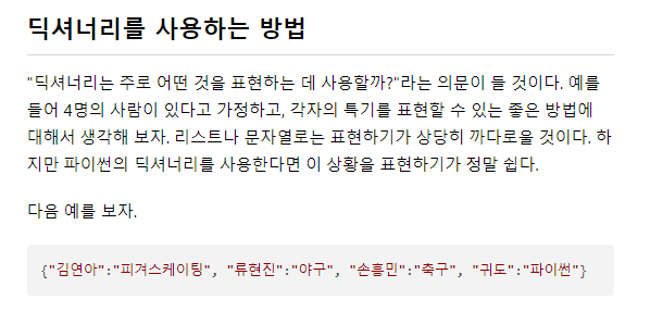 그렇다면 이 딕셔너리를 사용하는 이유와 언제 사용해야 할까?!
