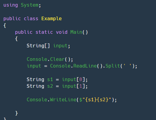 Console.WriteLine($"{s1}{s2}");