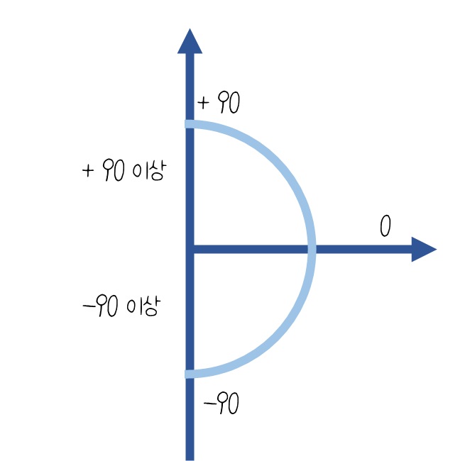 2,3분면에 있는 친구들은 +90보다 크고 - 90보다 크다