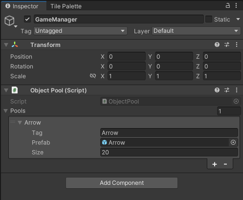 // 인스펙터창의 Pools를 바탕으로 오브젝트풀을 만들 것.