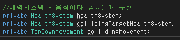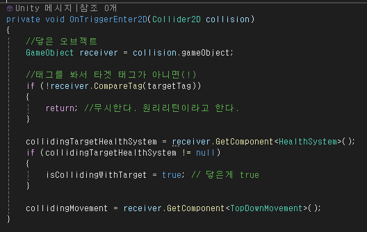 제일 밑에 elseif로 피격 시 조건이 있다.