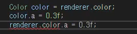void OnDeath() // 캐릭터 반투명화 + 컴포넌트 꺼주기