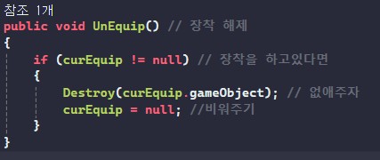 Destroy(curEquip.gameObject); // 없애주자