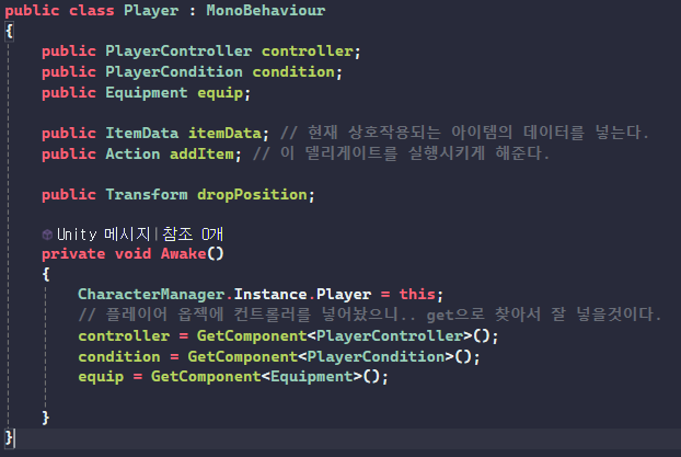 private PlayerCondition condition; // 이 두가지는 꼭 넣어주자.
