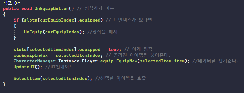 장착하기에 예외로 장착해제해 주는 함수가 있다. )