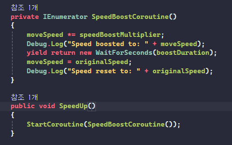 이속은 코루틴으로 증가시켰기 때문에