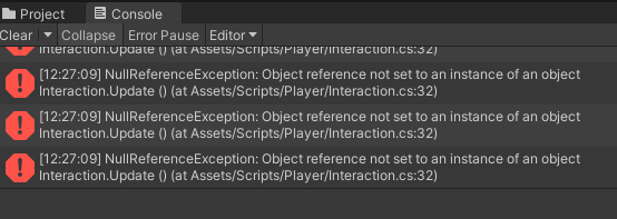playerController에서 빨간 줄이 떴다.