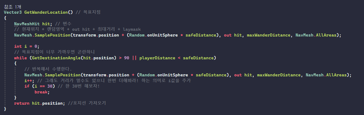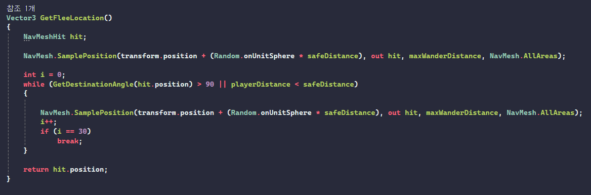 NavMeshHit으로 그 포지션 안에서 이동경로 한에서 최단 경로를 반환해 준다.