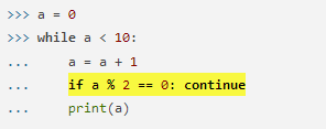 짝수인 친구들은 print 되지 않고 다시 a = a + 1의 식으로 돌아가게 된다.