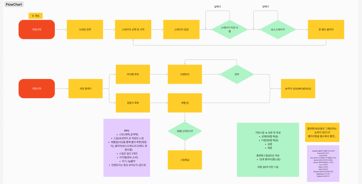 오늘 우리조는 퍼즐 + RPG 로 게임 방향성을 굳혔다.