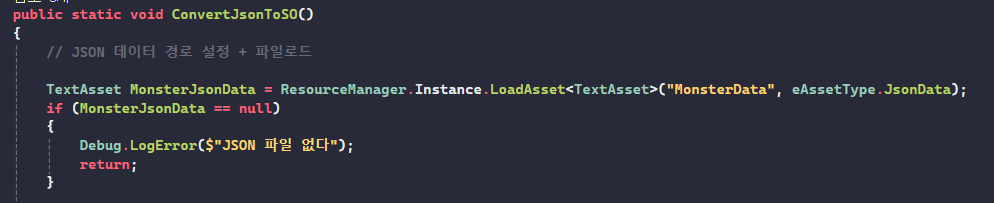 TextAsset MonsterJsonData = ResourceManager.Instance.LoadAsset<TextAsset>("MonsterData", eAssetType.JsonData);