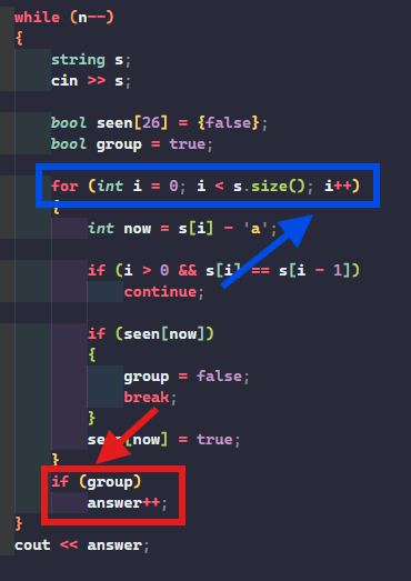 백준 C++ 1316번 그룹 단어 체커 ( break, continue ) 본문