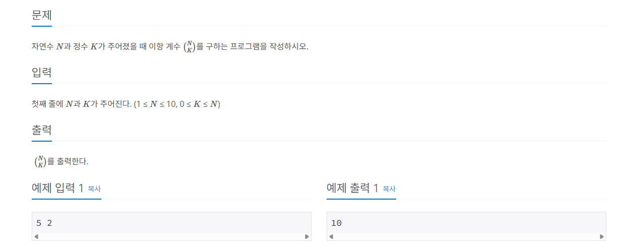 백준 C++ 11050번 이항 계수 1 ( 펙토리얼 ) 본문