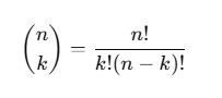 n / k = n! / k!(n−k)!