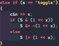 그냥 S ^= (1 << x ) 만 해줘도 된다.