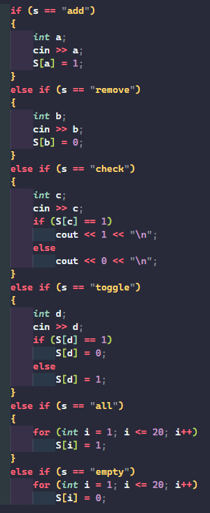 백준 C++ 11723번 집합 ( 비트마스크 ) 본문