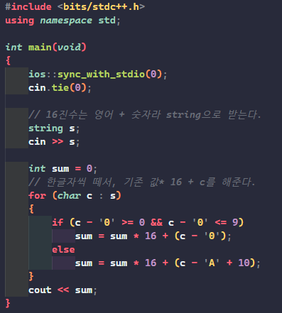 아니 그리고 hex >> n; 이거 뭐냐고!!!!!
