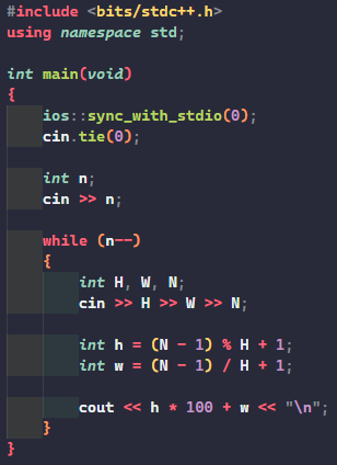 백준 C++ 10250번 ACM 호텔 ( 컴퓨터는 0, 나는 1 ) 본문