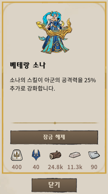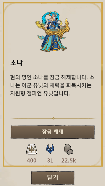 소나는 원거리 공격 + 공격 시 주변 원거리 버프까지 있어요!