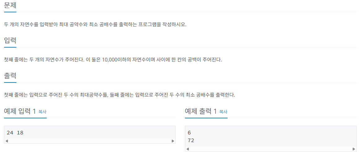 두 식을 곱한 값이랑 최대공약수 * 최소공배수랑 같다고 한다!!